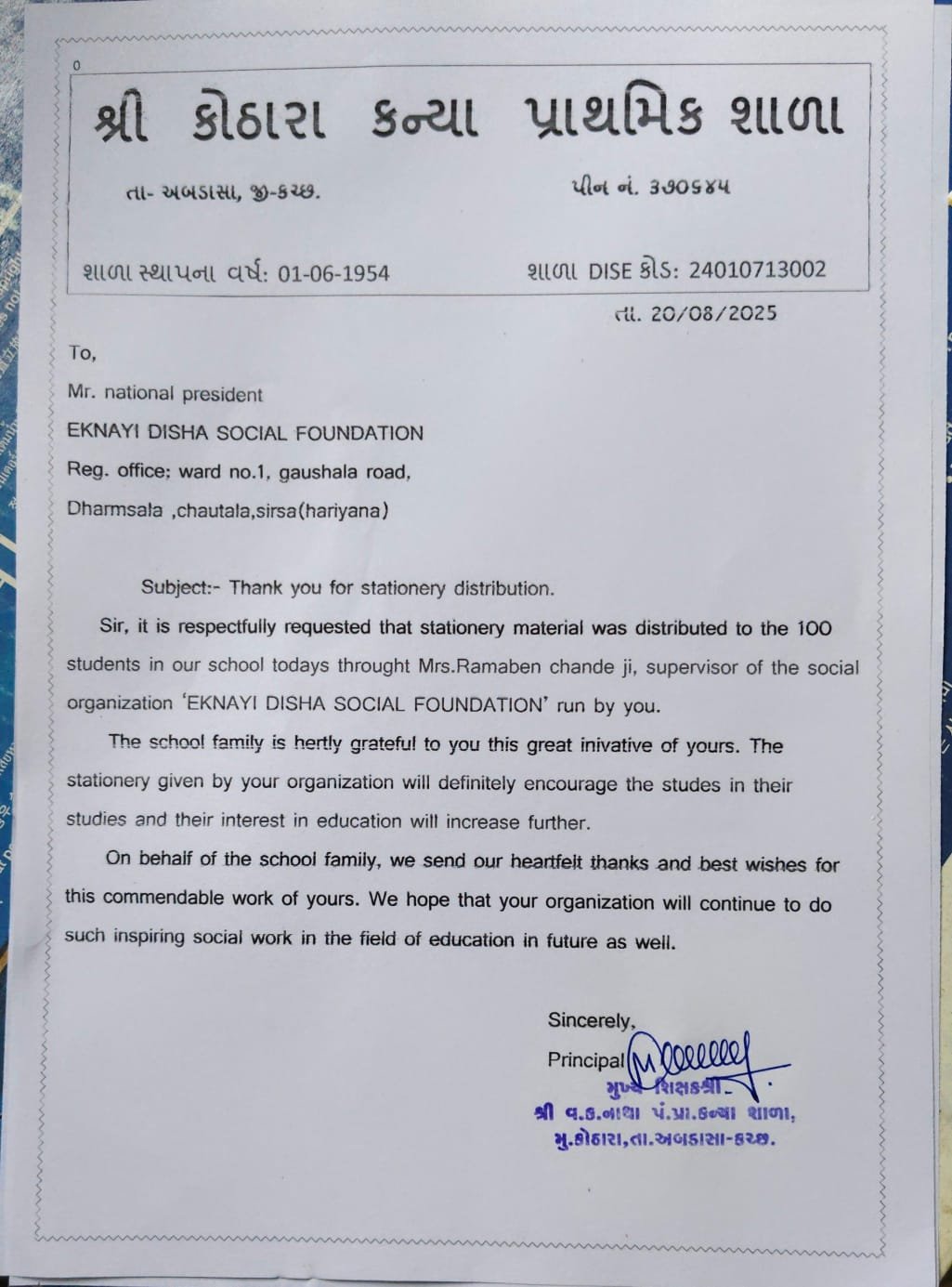 स्टेशनरी वितरण हेतु धन्यवाद।